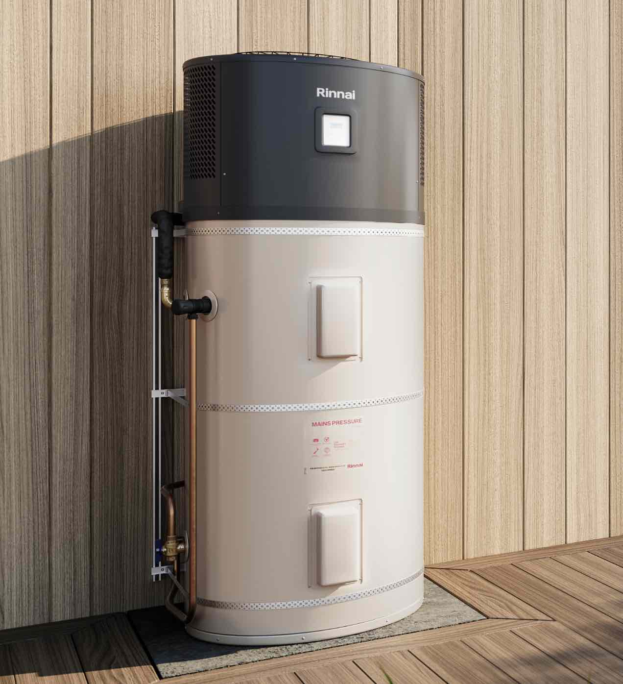 - A Rinnai HydraHeat® 275L heat pump hot water system